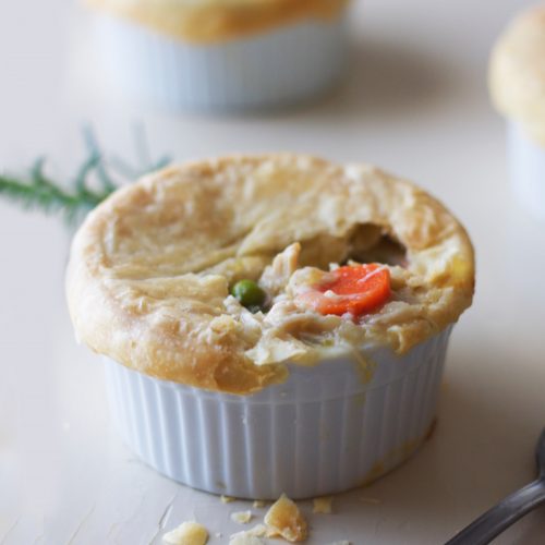 Chicken pot pie should not be a daunting task reserved for wintry nights. This pot pie recipe was born out of necessity – midweek, no meat defrosted, with very few ingredients on-hand, and several hangry family members. It’s likely that you already have everything needed in your fridge (and freezer!) to make this incredibly easy, delicious, foolproof chicken pot pie.